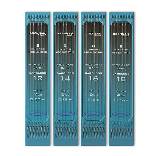 Drennan Hand Tied Hooklengths Wide Gape Carp Barbless Haak 14 0.18mm