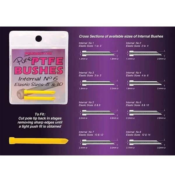 De PTFE Bush Internal van Drennan is een interne top- en elastiekbeschermer. Deze interne busjes zijn gemaakt van PFTE en dit zorgt er voor dat er geen frictie ontstaat, zodat het elastiek niet hapert tijdens de dril van een vis en het elastiek langer mee zal gaan. Verkrijgbaar in: No. 1 No. 2 No. 3 No. 4 No. 5 No. 6 No. 7 No. 8