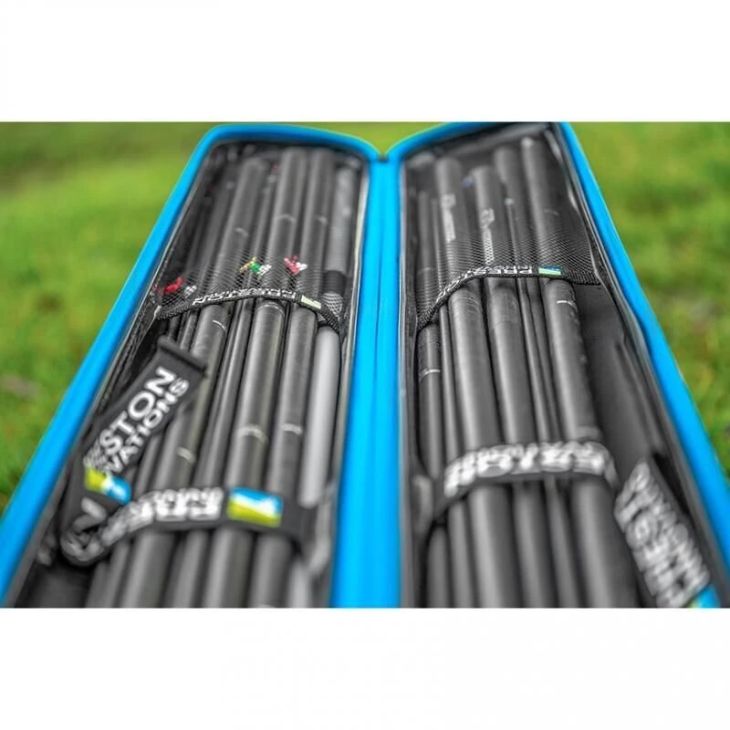 Met veel vissers die ervoor kiezen om 1-delige topkits te gebruiken, stelt de Hardcase Kit Safe de visser in staat om tuigen te gemonteerd te laten zitten op hun kits. Zo bewaar je ze veilig in de harde buitenschaal van de Kit Safe. De binnenkant van de Hardcase Kit Safe is voorzien van elastische banden en beschermende mesh-banden. Stijlvol uiterlijk, duurzame extra grote ritsen en luxe gevoerde draagriem maken dit een musthave voor elke vaste stok visser.