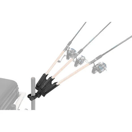 De Preston Offbox 36 Triple Rod Support is ideaal voor het klaarleggen van 3 hengels tijdens het vissen. Je kunt deze bevestigen aan een poot van je viskist of plateau. De hoek kan aangepast worden.
